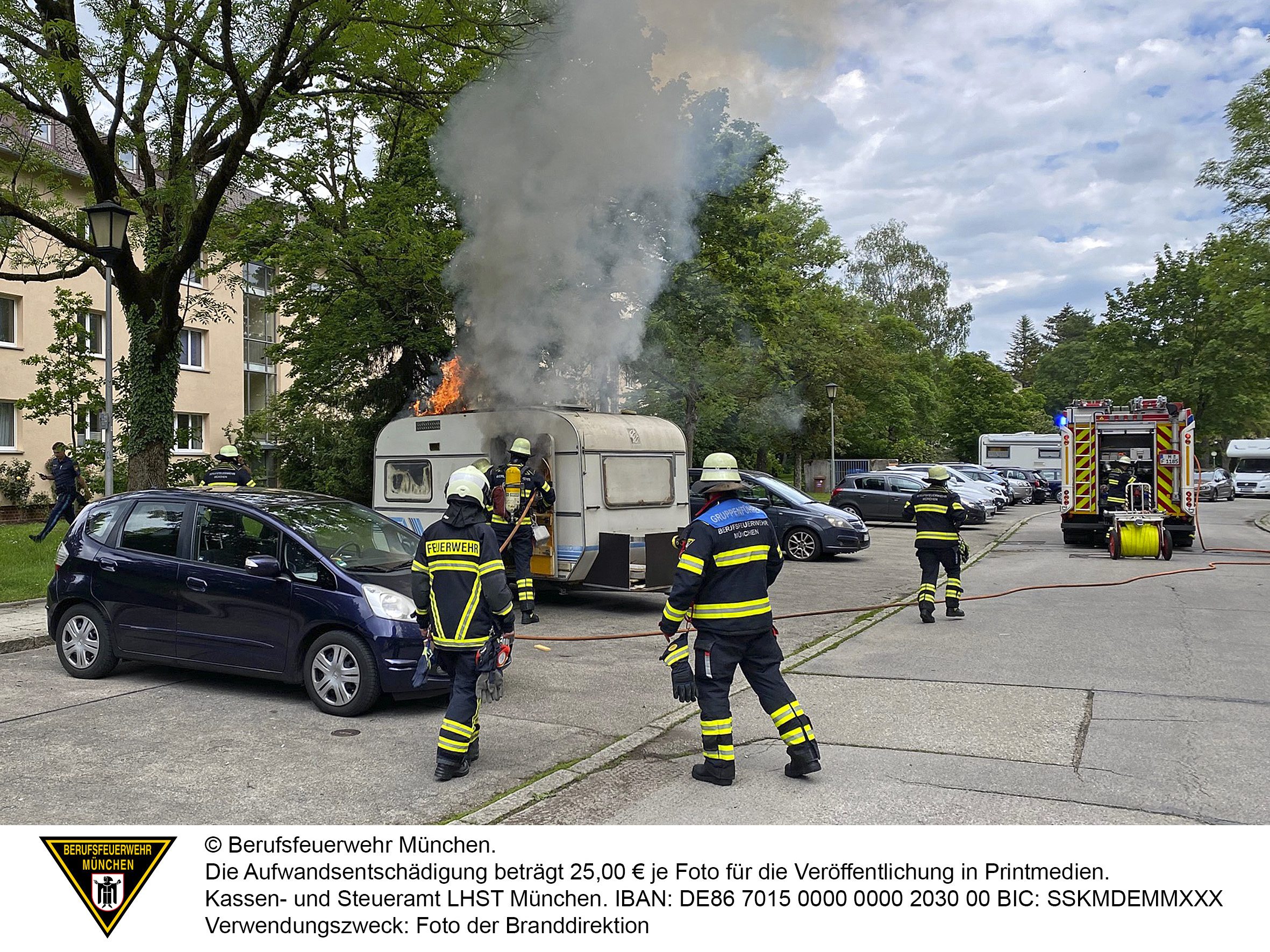 München-Morsering: Mann bei Wohnwagenbrand verletzt (Harthof)