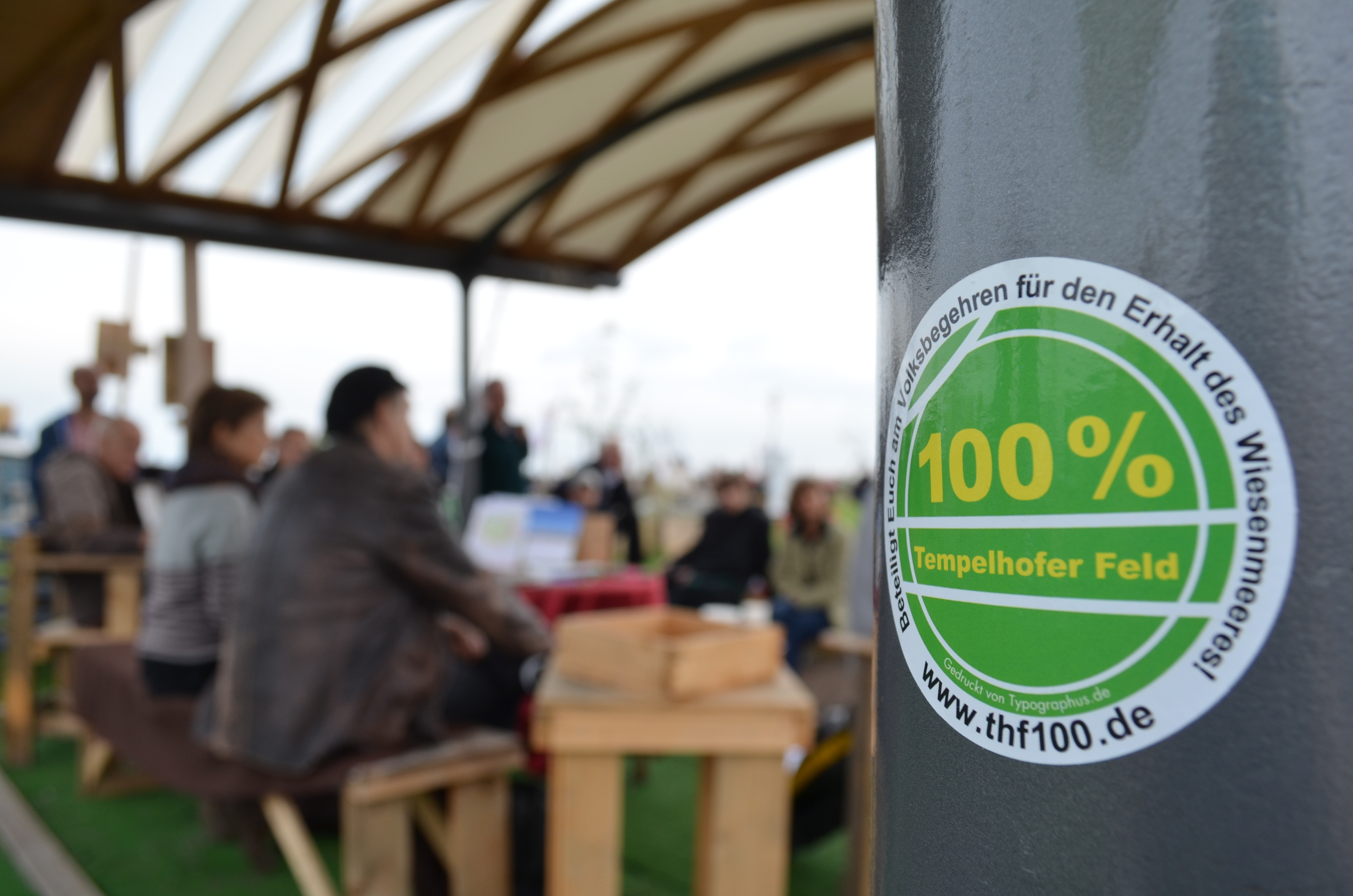 Die Initiative 100% Tempelhofer Feld setzt sich dafür ein, dass das Flughafengelände in seiner jetzigen Form beibehalten und nicht bebaut wird.