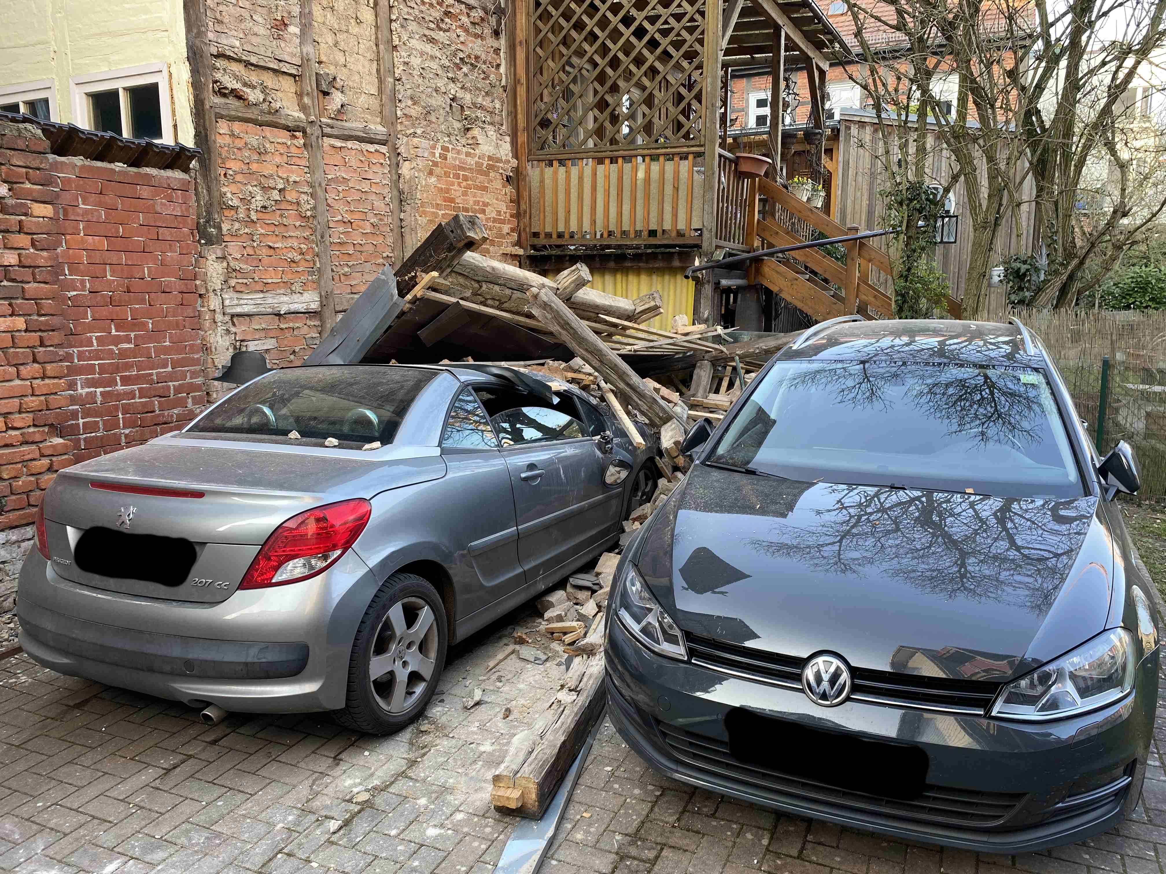 Schwerin: Einstürzende Hauswand beschädigt zwei abgestellte Pkw
