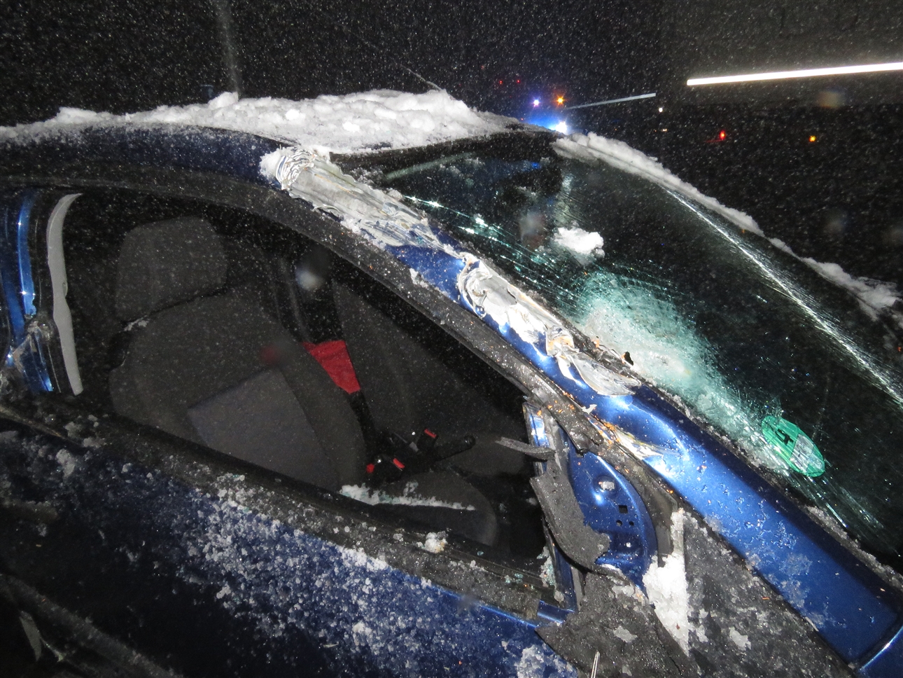 Dieser Wagen kollidierte gegen 4.15 Uhr auf der Eisenstraße in Meinerzhagen mit einem Räumfahrzeug. Bild: Polizei MK