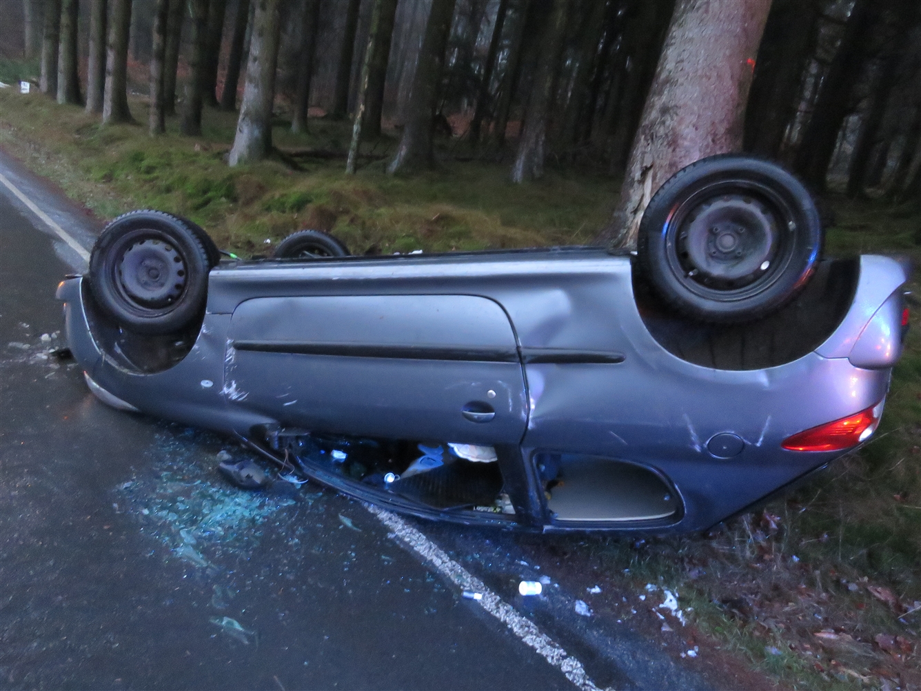 Auf der K 3 in Kierspe erwischte es diesen Kleinwagen: Er schleuderte und überschlug sich. Bild: Polizei MK