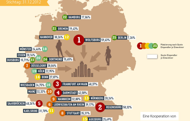 Zurück zu Deutscher Pendleratlas: Wolfsburgs Einwohnerzahl wächst an Werktagen um 60 Prozent