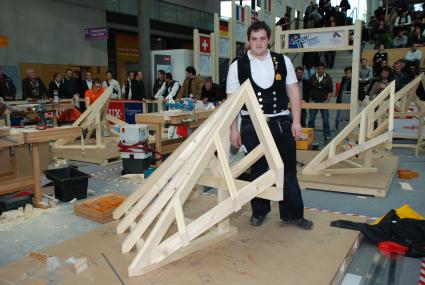 Der beste Zimmerer Europas 2012 kommt aus Baden-Württemberg: Andreas Fichter (19) aus St. Georgen mit seinem "Europameister-Stück". Bild: "obs/ZDB Zentralverband Dt. Baugewerbe"