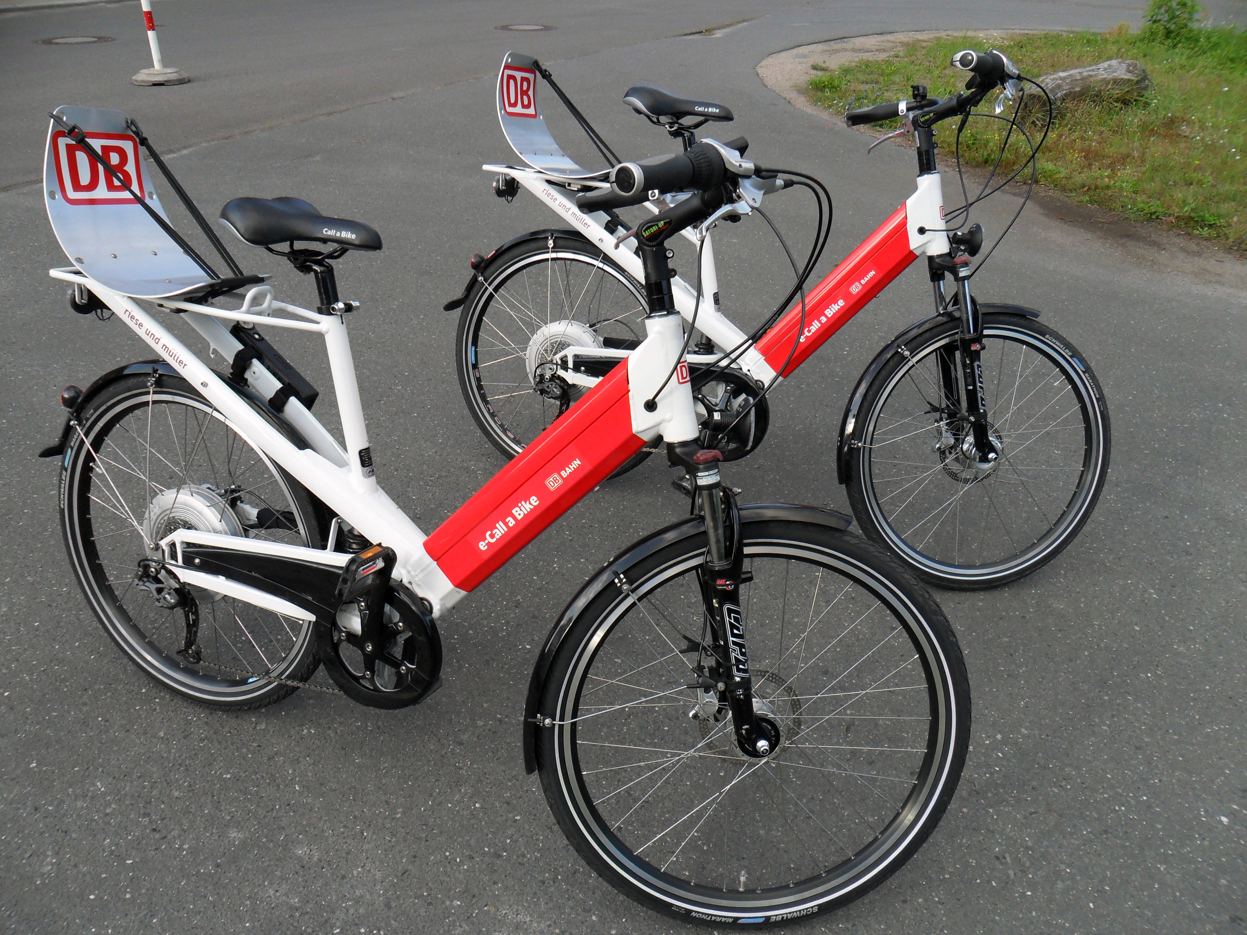 Pedelecs der Deutschen Bahn mit Nabenmotor im Hinterrad und Akku im Rahmen, Modell “Jetstream” von Riese und Müller.