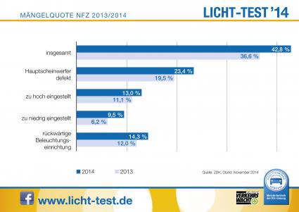 Licht-Test Mängelquote Nfz 2014. Bild: "obs/Zentralverband Deutsches Kraftfahrzeuggewerbe/ProMotor"