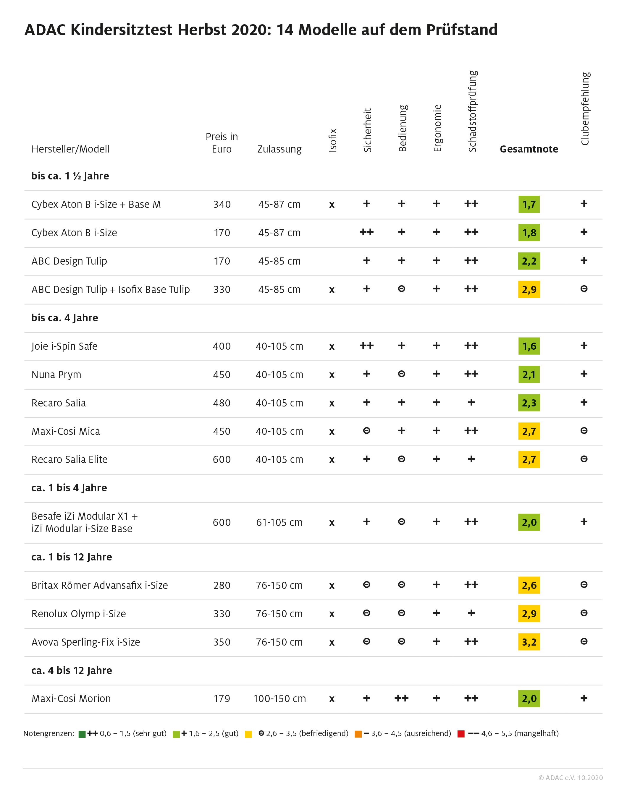 ADAC Kindersitztest: Alle Modelle empfehlenswert