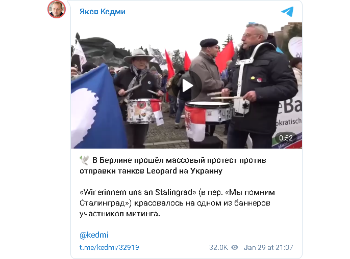 Zurück zu "Keine deutschen Panzer nach Debalzewo und Stalingrad!" – Hunderte Berliner demonstrieren gegen Lieferung deutscher Waffen in die Ukraine
