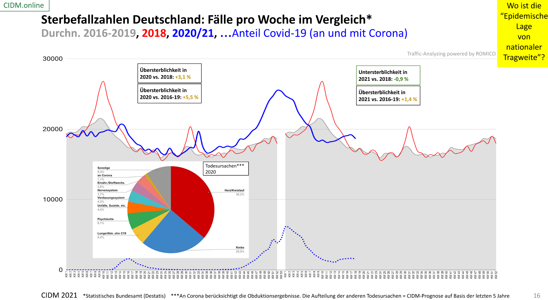 Sterbefallzahlen Deutschland bis Anfang Mai 2021 im Vergleich: Keine ungewöhnliche Entwicklung zu erkennen. Stand 09.05.2021