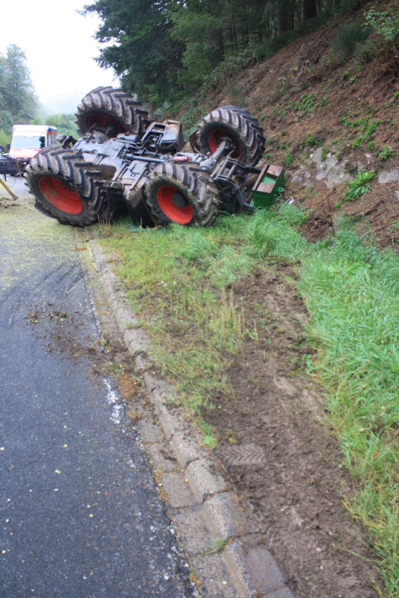 Verunfallte landwirtschaftliche Zugmaschine.