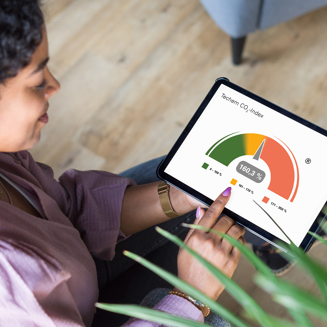Der Techem CO2-Index weist das Verhältnis aus tatsächlicher Emission zu der Zielemission für 2023 aus.