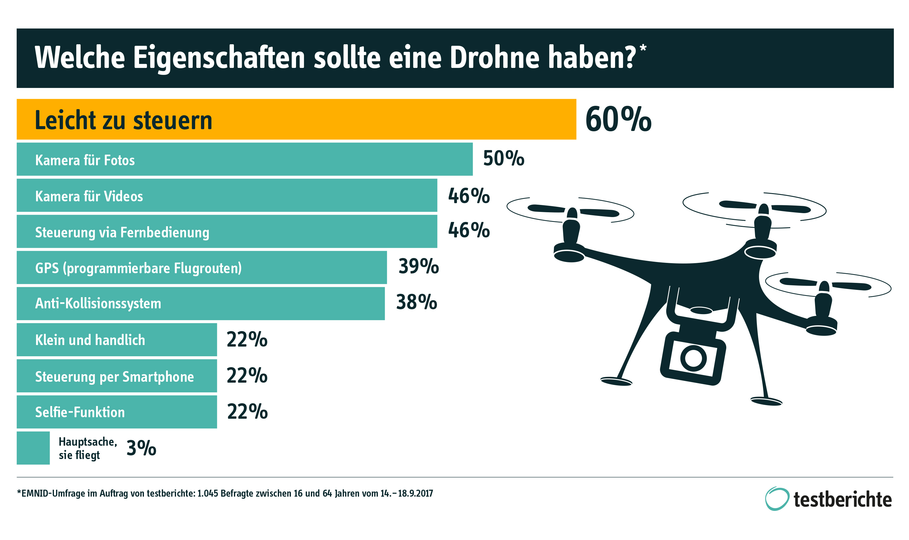 Zurück zu EMNID-Umfrage im Auftrag von Testberichte.de: Was wünschen sich die Deutschen von einer Drohne?