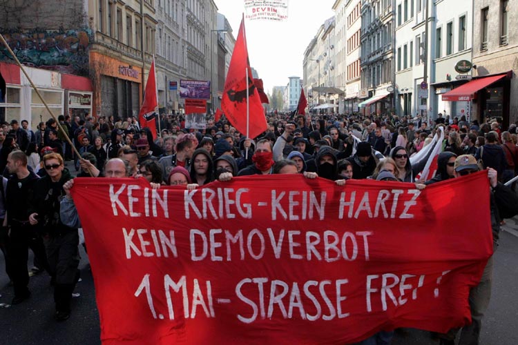 Zurück zu Revolutionäre 1.-Mai-Demonstration in Berlin-Kreuzberg läuft durch Myfest