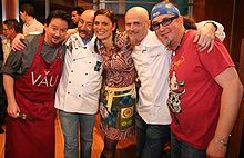 Horst Lichter (2.v.l.) zusammen mit Kolja Kleeberg, Sarah Wiener, Ralf Zacherl und Stefan Marquard (v.l.). Bild: Udo Grimberg