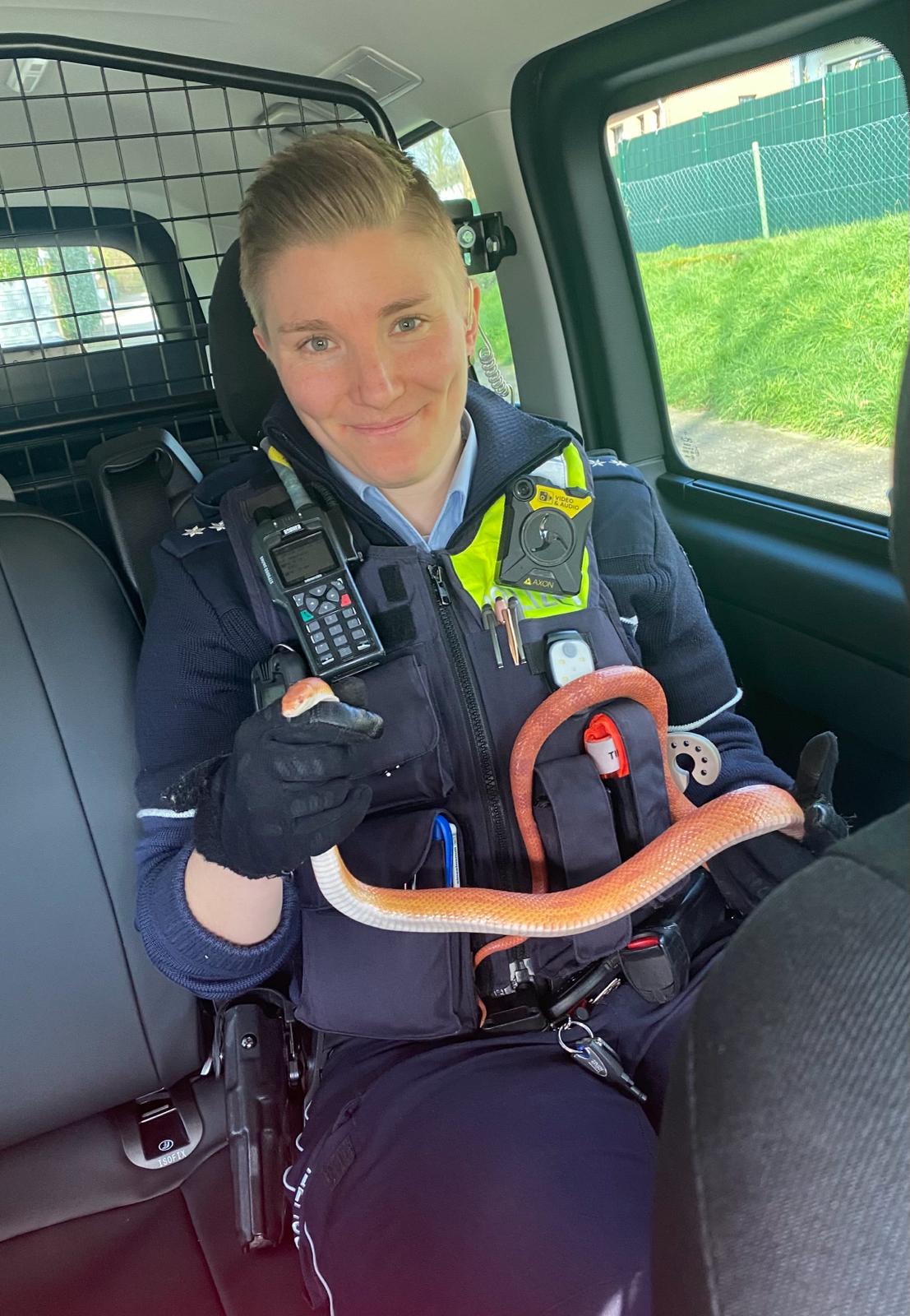 Albino-Kornnatter im Streifenwagen Bild: Polizei