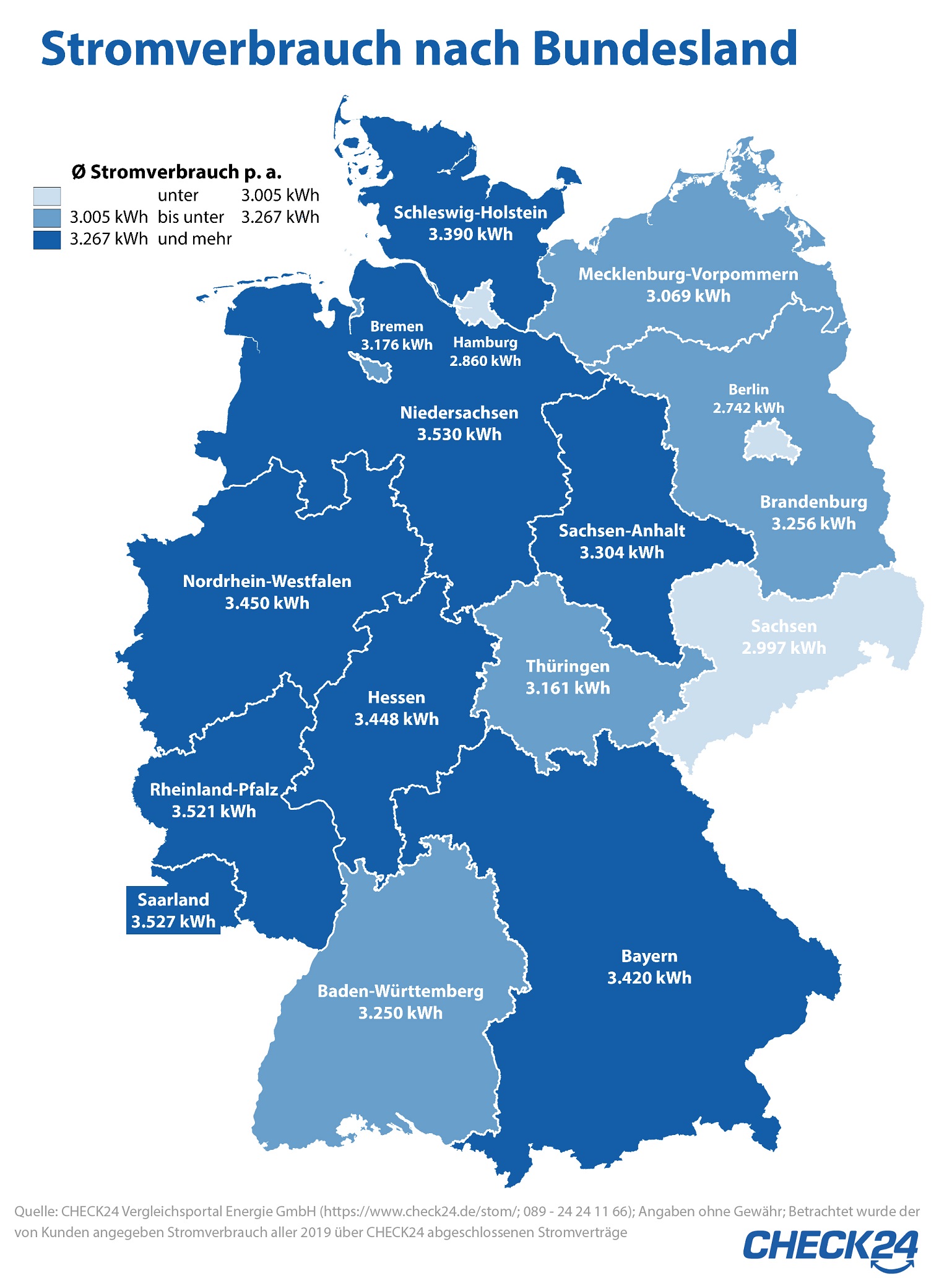 Zurück zu Strom: Niedersachsen, Saarländer und Rheinland-Pfälzer verbrauchen am meisten