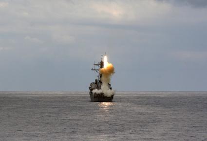 Der amerikanische Zerstörer Donald Cook schießt mit einem SM2 Flugkörper. Bild: Ann-Kathrin Fischer - Deutsche Marine
