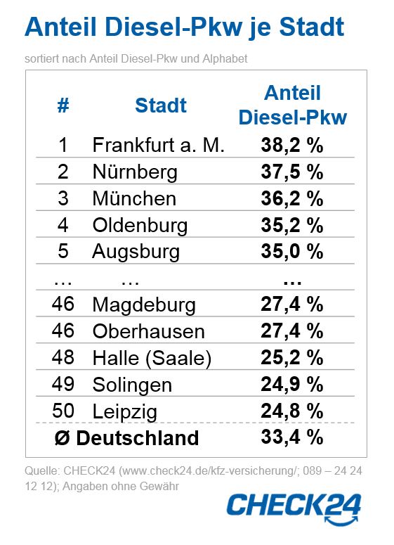 Anteil Diesel-Pkw je Stadt / Bild: "obs/CHECK24 GmbH"