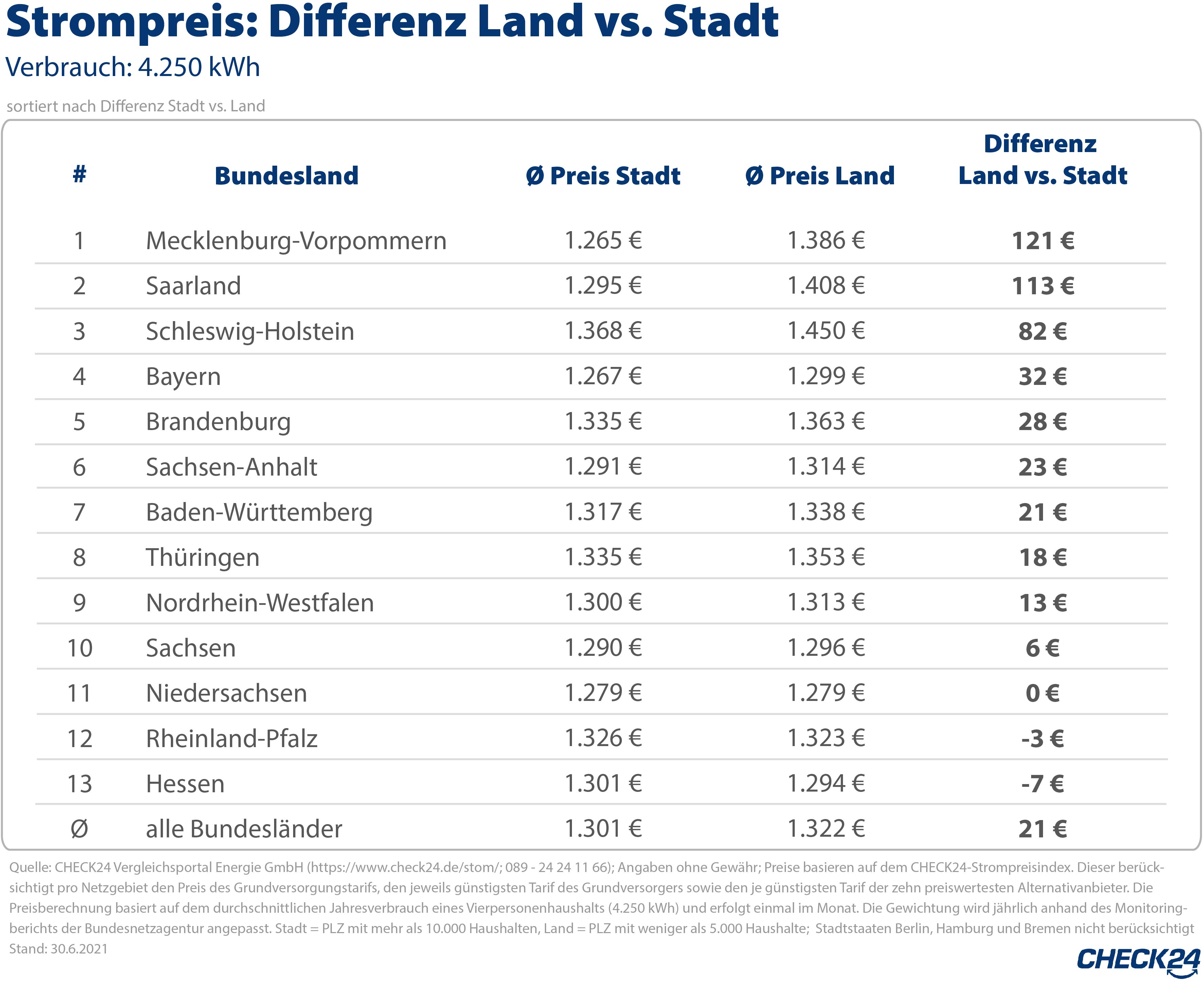 Zurück zu Strom auf dem Land teurer als in der Stadt - bis zu zehn Prozent Preisdifferenz