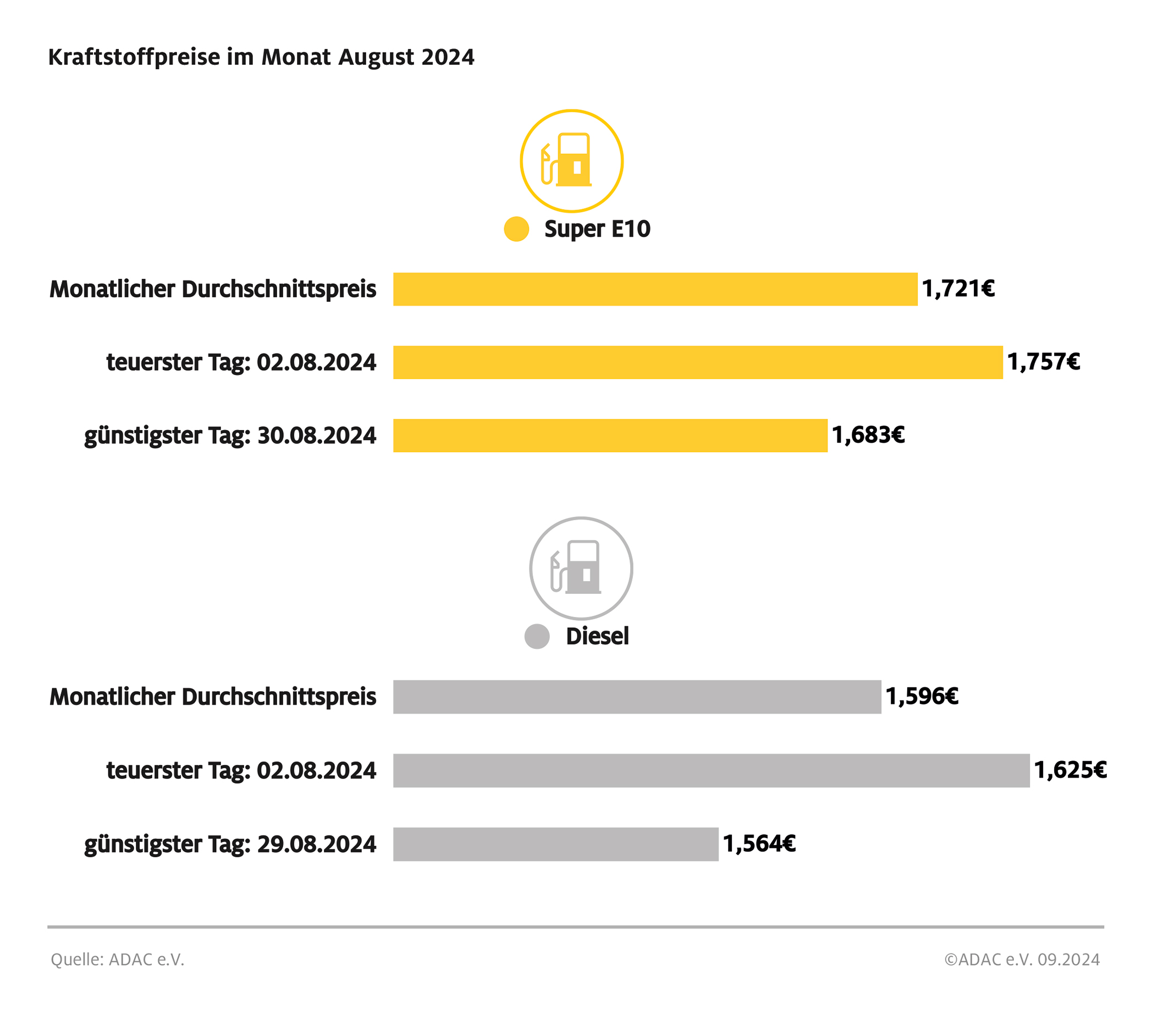 Kraftstoffpreise im August 2024 Bild: ADAC Fotograf: ADAC