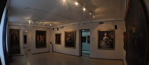 Dessauer Gemälde in der Dauerausstellung des Museums in Poltawa. Ganz links neben dem Durchgang: Karl von Anhalt, gemalt von Lucas Cranach d. J. Mitte links neben dem Durchgang: Friedrich II. von Preußen, Antoine Pesne. Ganz rechts neben dem Durchgang: Casimire von Anhalt Dessau, gemalt von Lisiewski. BILD: Poltava Art Museum