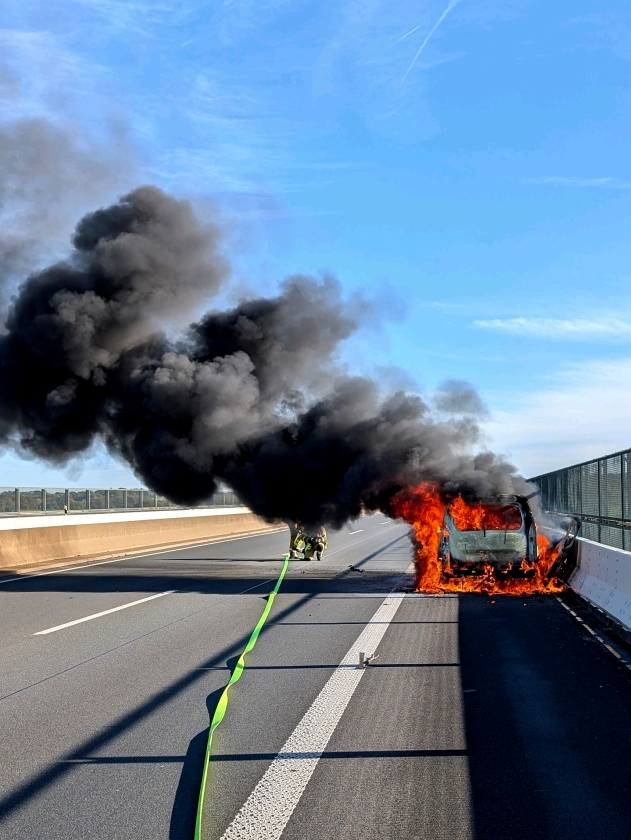 Ratingen-Breitscheid: Brennender PKW auf Ruhrtalbrücke
