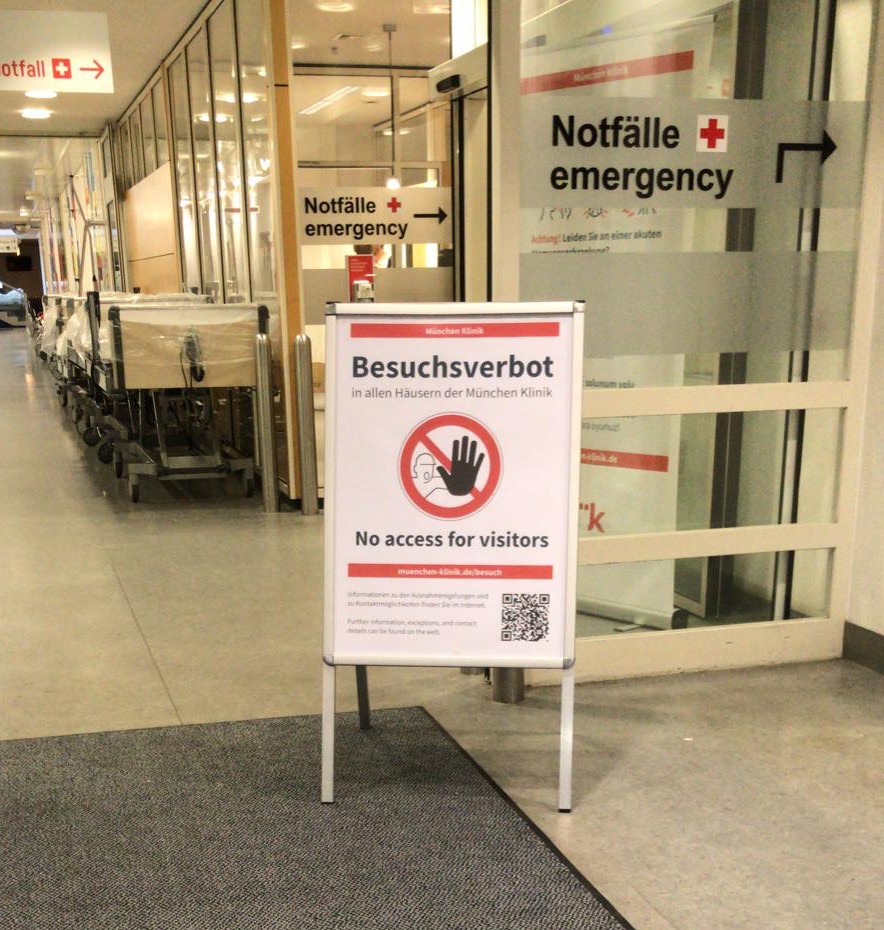 Coronavirus: Verbotsschild zum Besuchsverbot in den München Kliniken