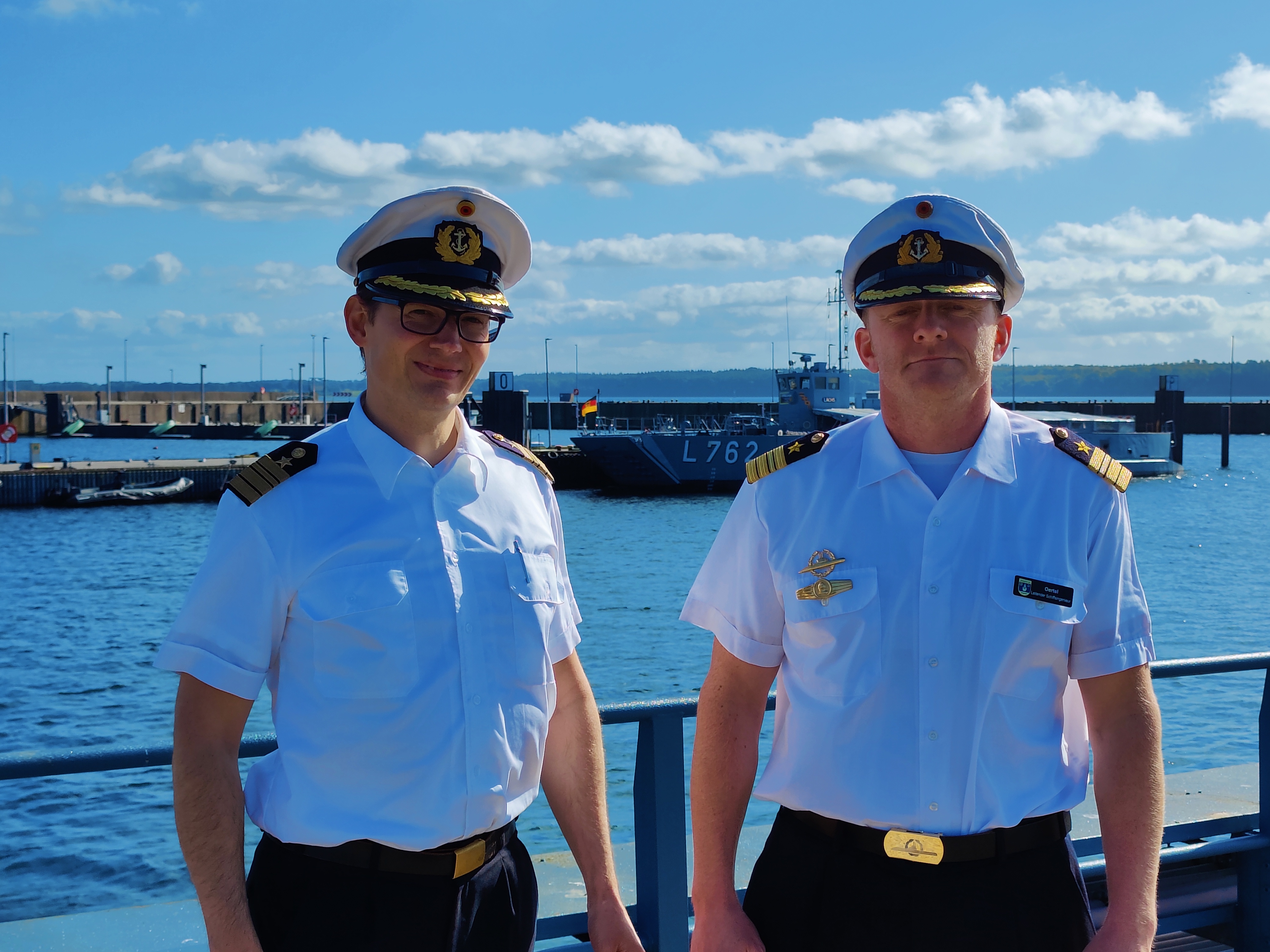 Der scheidende Kommandeur Fregattenkapitän Oliver Wellinger (39) übergibt sein Kommando über den Marinestützpunkt Eckernförde an Fregattenkapitän Olaf Oertel (41). Bild: Bundeswehr