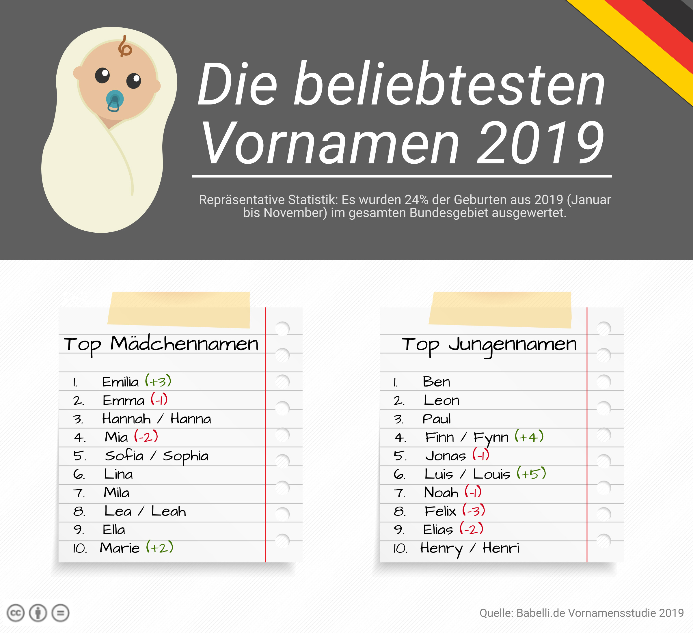Zurück zu Emilia und Ben sind die beliebtesten Vornamen 2019
