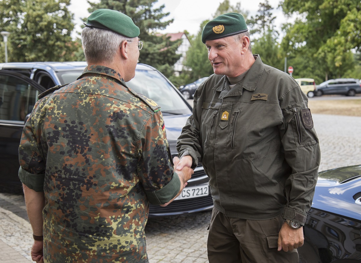 Generalleutnant Jörg Vollmer (l.) empfängt den österreichischen Generalleutnant Franz Reißner (r.) im Kommando Heer Bild: "obs/Presse- und Informationszentrum des Heeres/Mario Bähr"