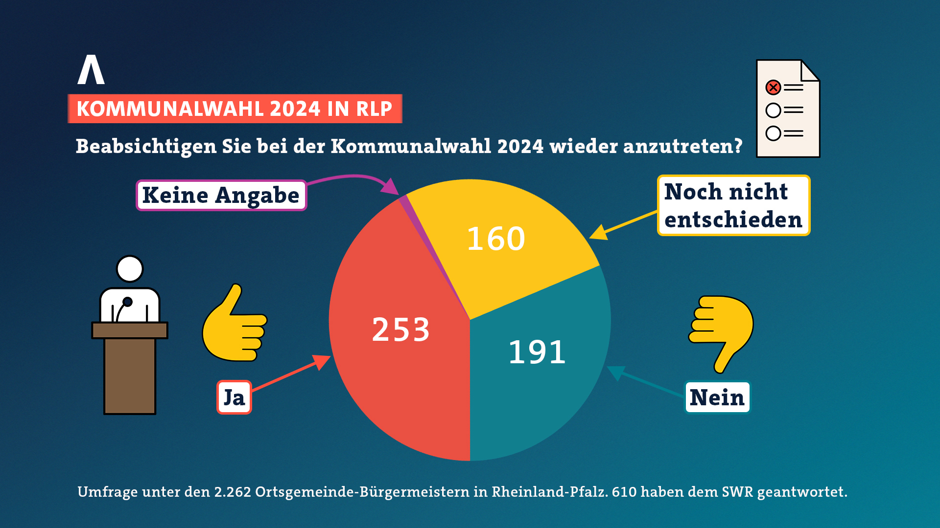 SÜDWESTRUNDFUNKSWR-Umfrage zur Kommunalwahl 2024: Viele Ortsbürgermeister und -bürgermeisterinnen in Rheinland-Pfalz wollen nicht erneut kandidieren.