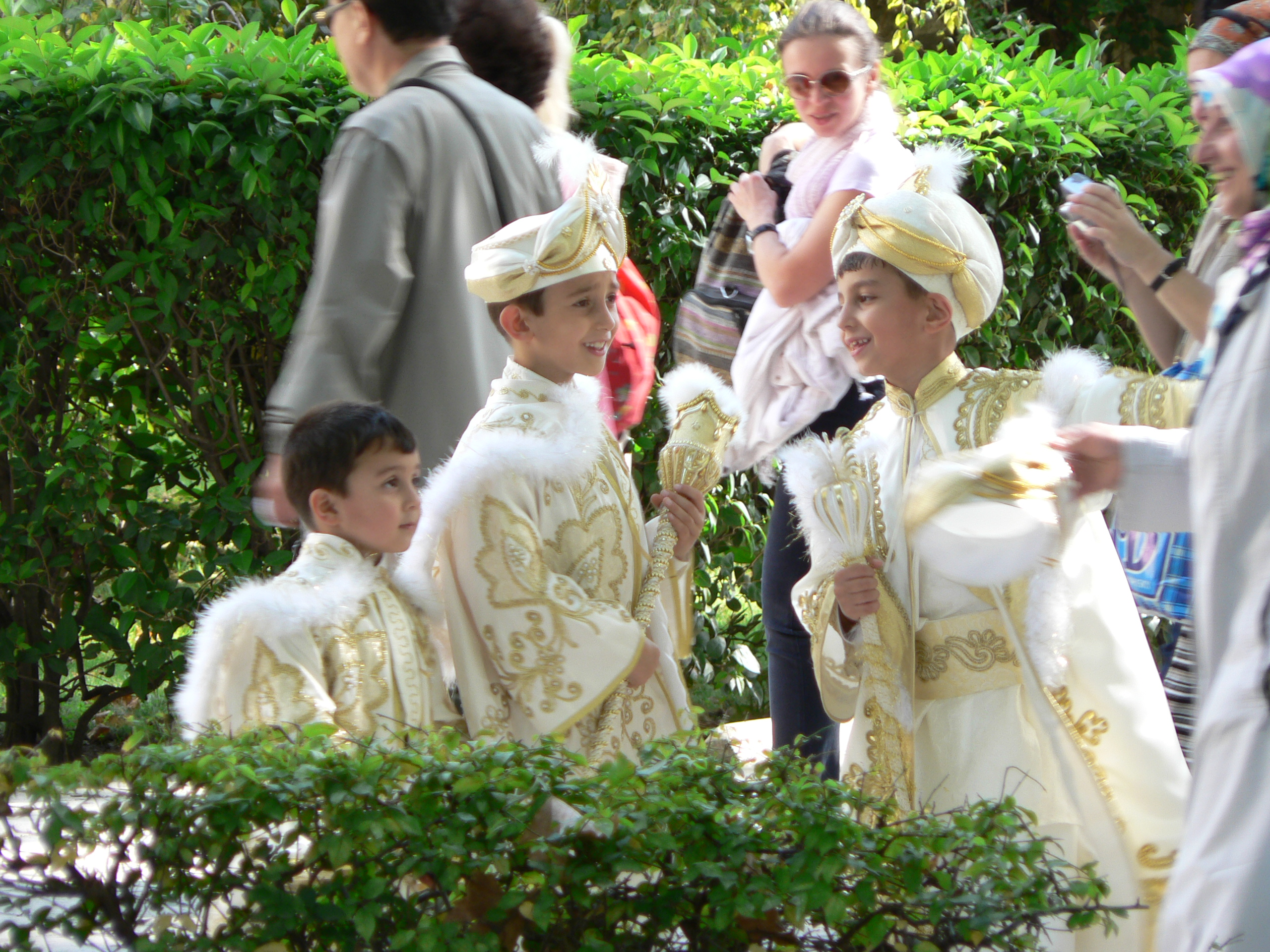 Jungen auf dem Weg zu einer türkischen Beschneidungszeremonie