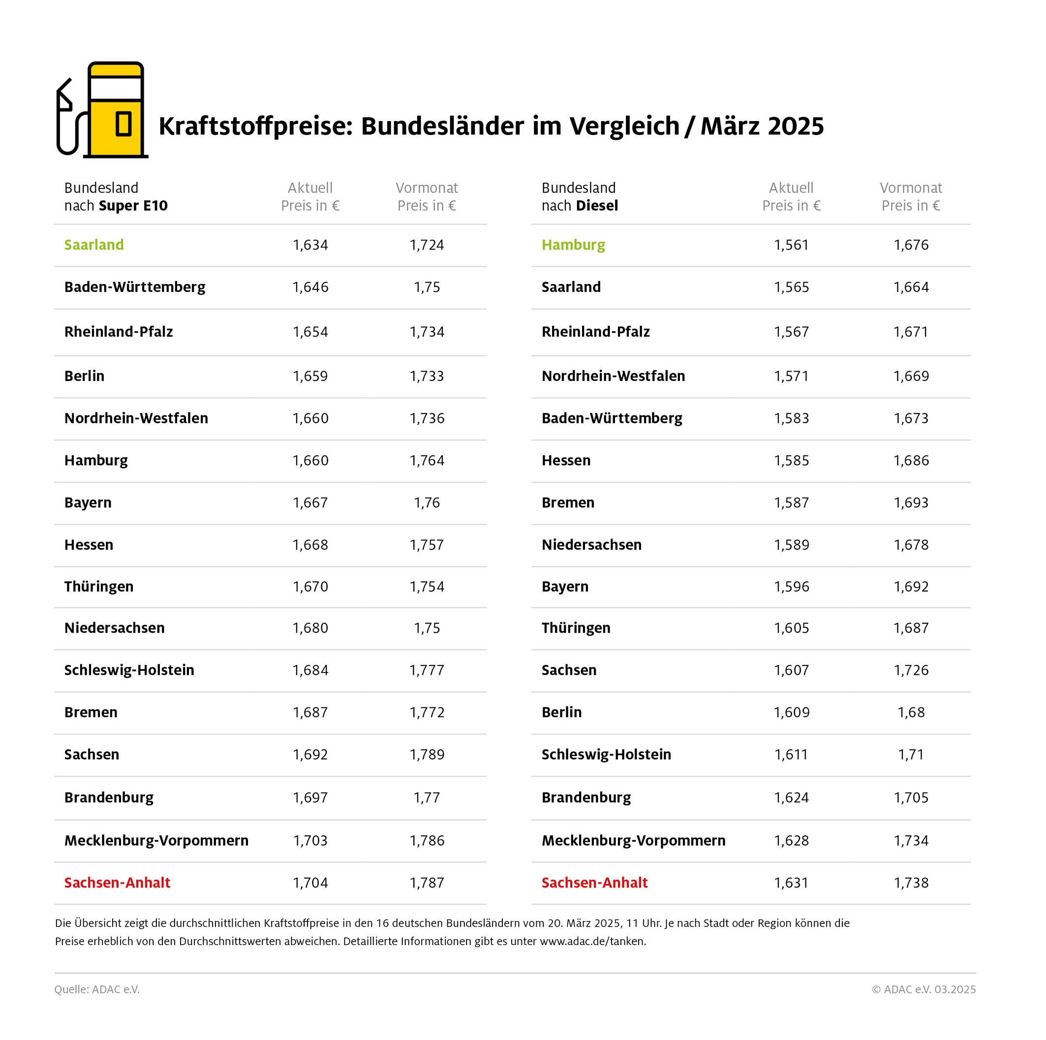 Zurück zu Saarland und Hamburg beim Tanken am günstigsten: Ostdeutsche Bundesländer mit den höchsten Spritpreisen