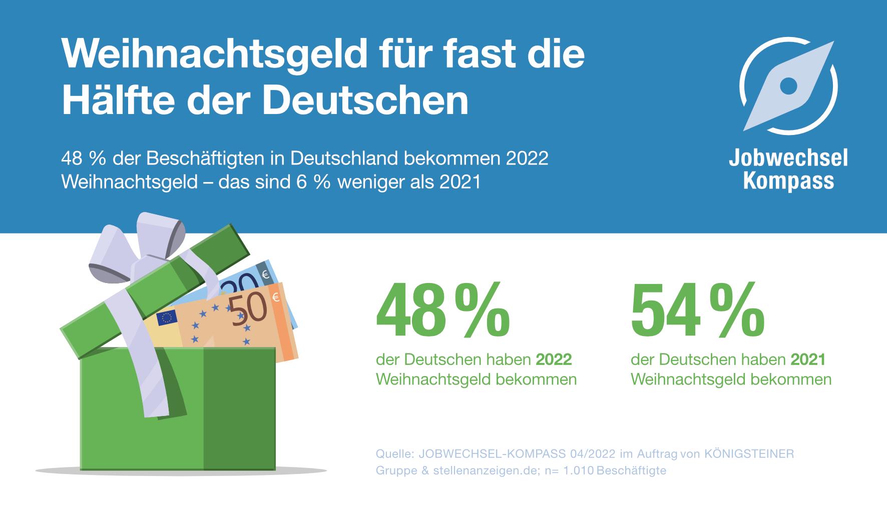 Fast die Hälfte der Deutschen erhalten 2022 Weihnachtsgeld, 6% weniger als 2021