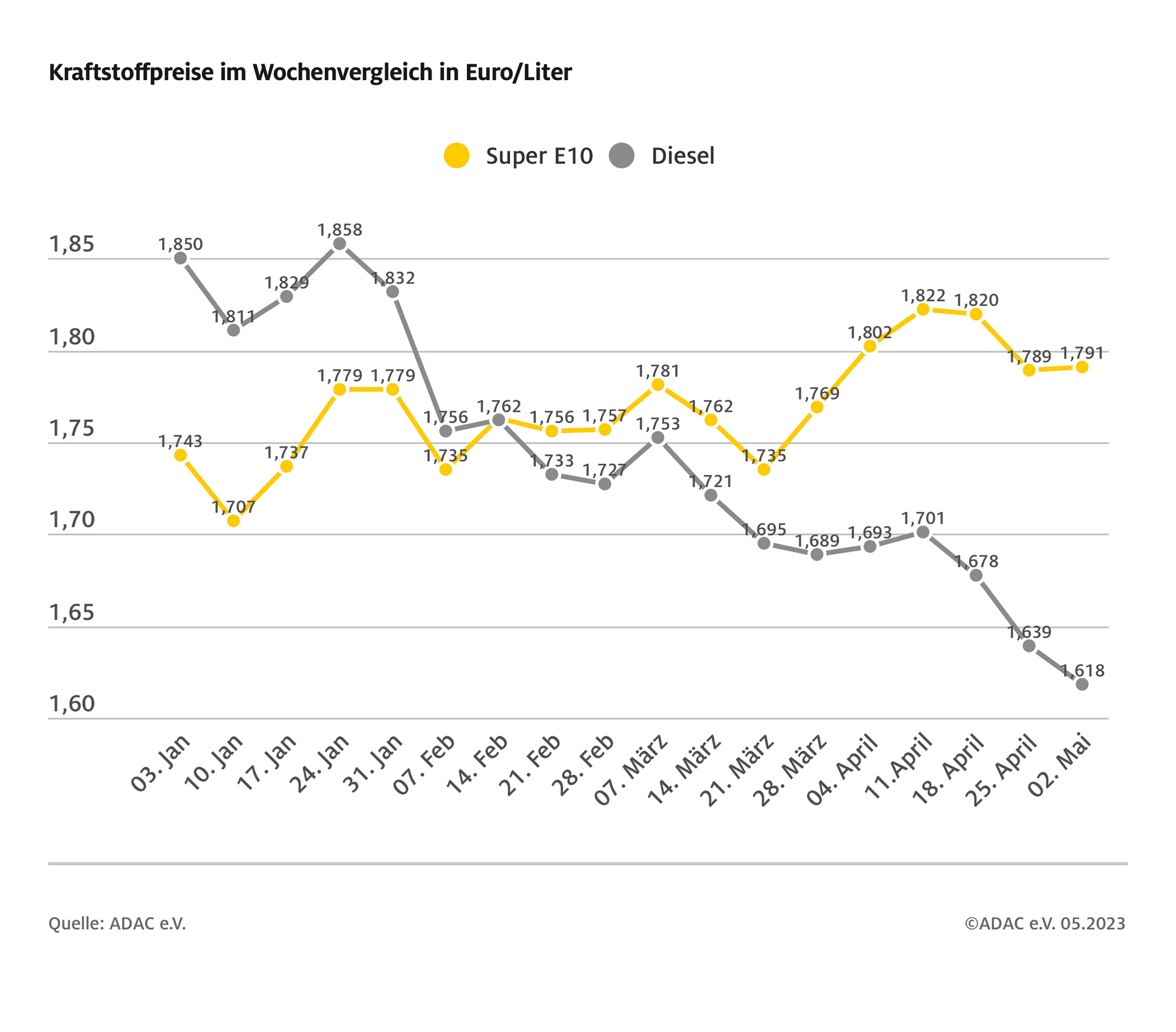 Kraftstoffpreise im Wochenvergleich
