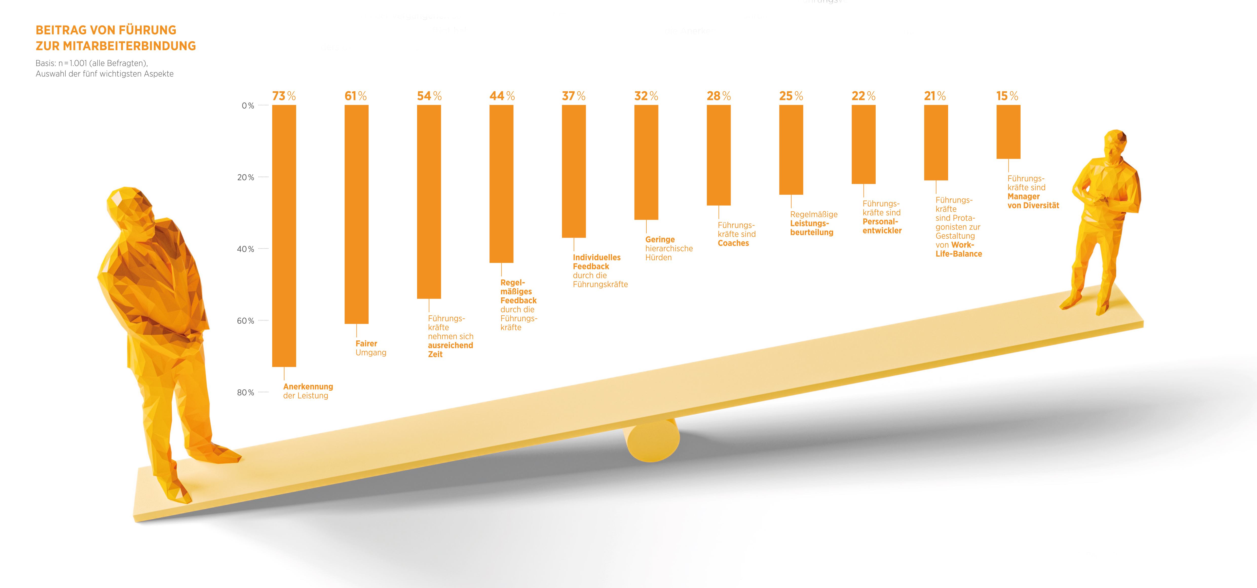 Wenn es darum geht, die Mitarbeitenden zu binden, ist das Verhalten der Führungskräfte ebenfalls ein wichtiger Faktor.