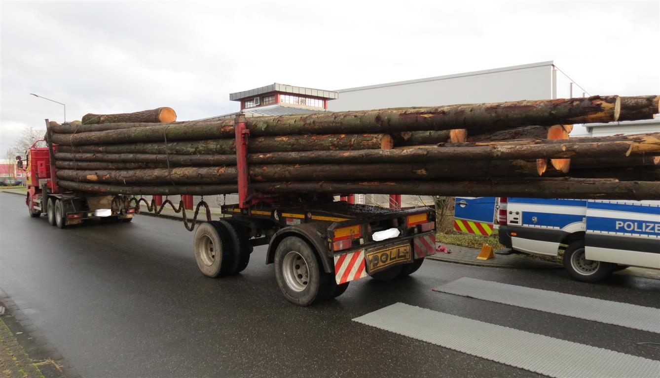 Holztransport mit Douglasienstämmen Bild: Polizei
