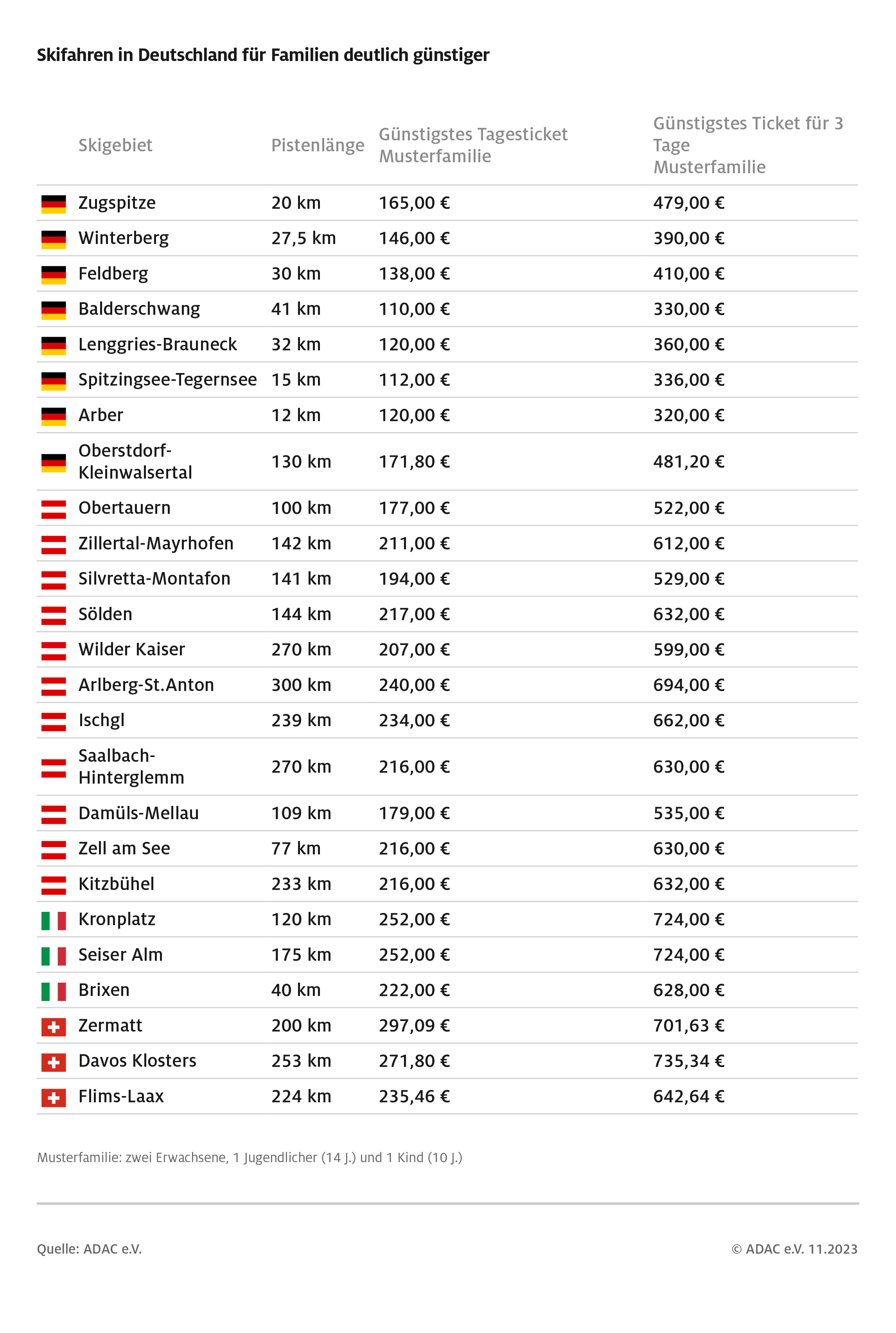 Zurück zu Skipasspreise für Familien in Deutschland deutlich günstiger: ADAC Vergleich in 25 beliebten Skigebieten