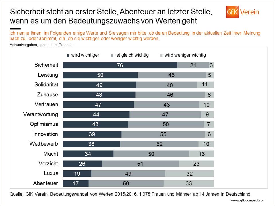 Umfrage des GfK Vereins zur Bedeutung von Werten