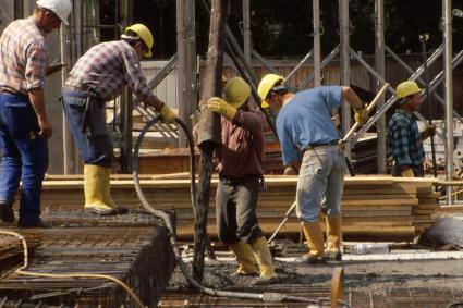 Unfallgefahren gibt es auch bei Betonierarbeiten, zum Beispiel durch Stolpern oder Anstoßen am hängenden Betonkübel / Die Verwendung dieses Bildes ist für redaktionelle Zwecke honorarfrei. Veröffentlichung bitte unter Quellenangabe: "obs/Berufsgenossenschaft der Bauwirtschaft"