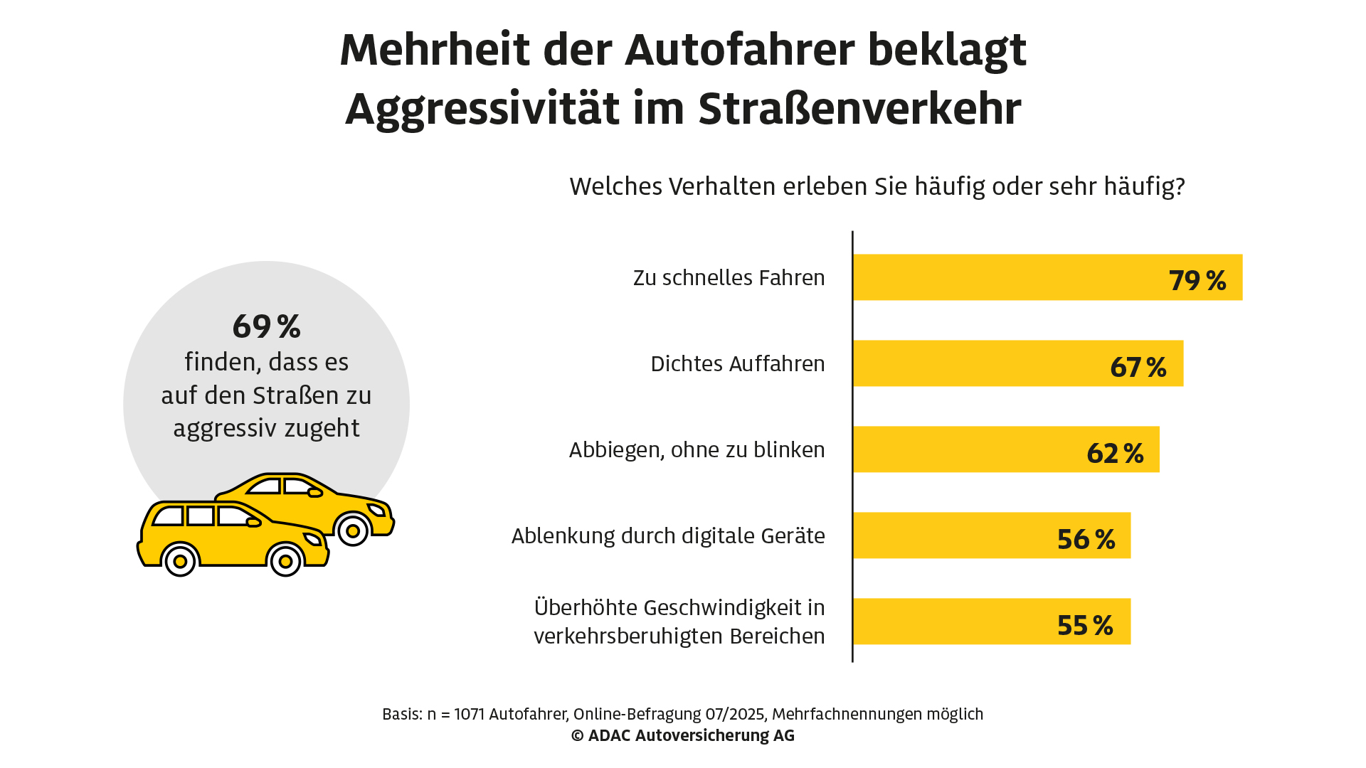 Sie sind hier: Startseite Nachrichten Vermischtes Zwei von drei Autofahrern beklagen Aggressivität auf den Straßen Bild: ADAC Autoversicherung AG Fotograf: ADAC SE