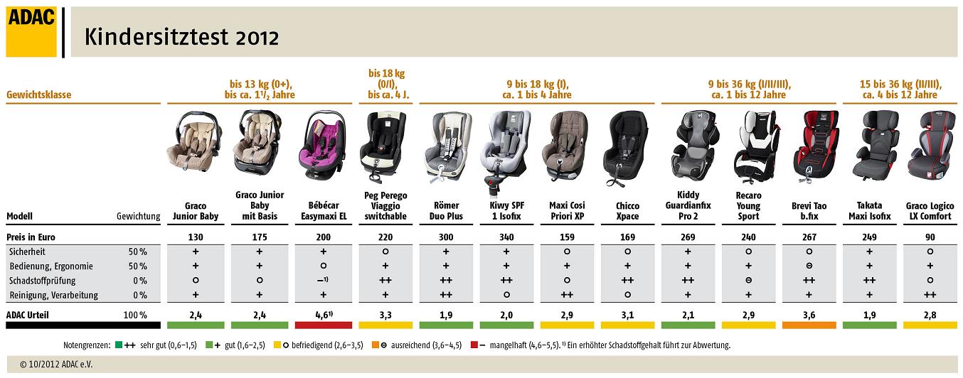 ADAC Kindersitztest 2012: Sicher unterwegs mit guten Sitzen