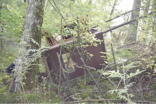 Das Bild zeigt einen umgerissenen Hochsitz am Immenweg Bild: Polizei