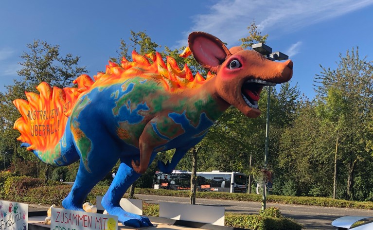 Bild des Pappmaché Kängurus der Kundgebung für Klimaschutz Bild: Polizei