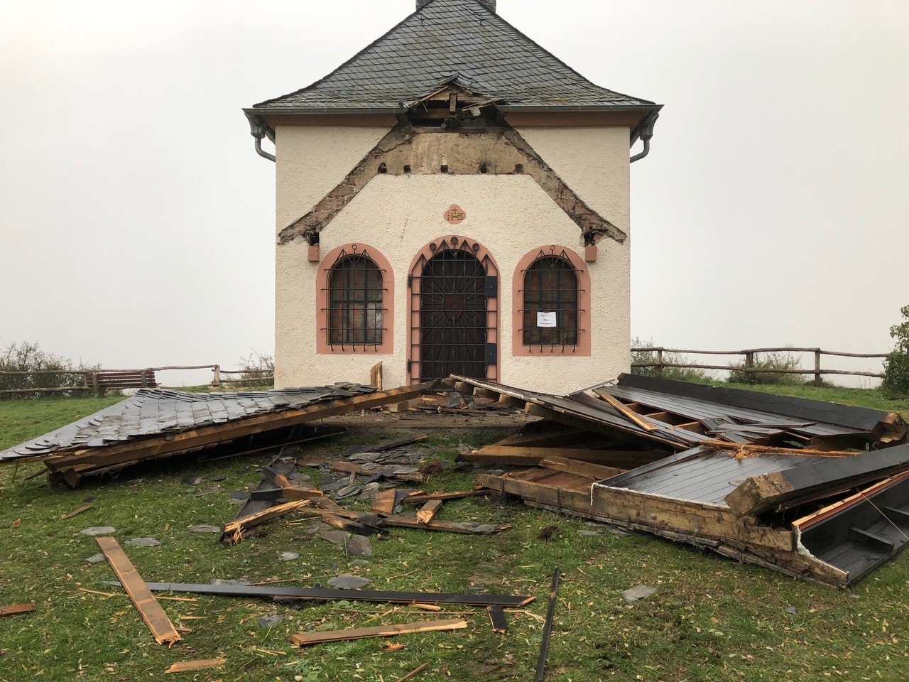 Beschädigtes Dach der Kapelle Bild: Polizei