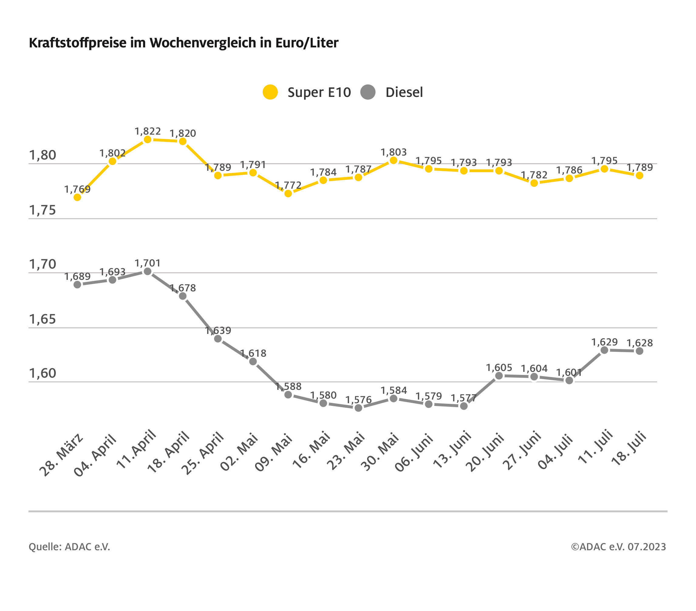 Zurück zu Kaum Veränderungen bei den Spritpreisen Benzin 0,6 Cent billiger als in der Vorwoche Dieselpreise sinkt um 0,1 Cent