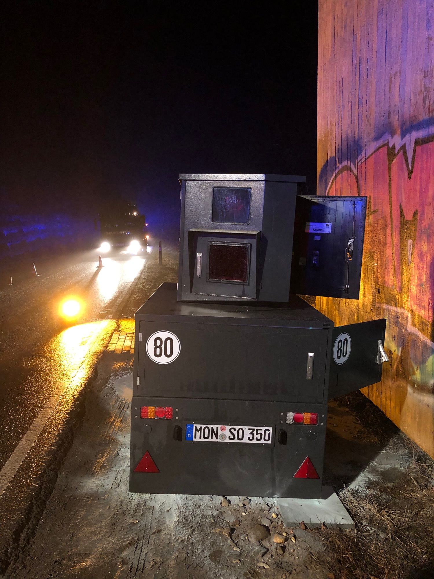 Beschädigte Geschwindigkeitsmessanlage Bild: Polizei