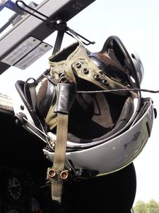 Pilotenhelm: mit integrierter Atemmaske. Bild: pixelio.com/Angelina Ströbel