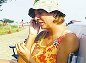 Cindy Sheehan wartet in Crawford/Texas auf US-Präsident George W. Bush