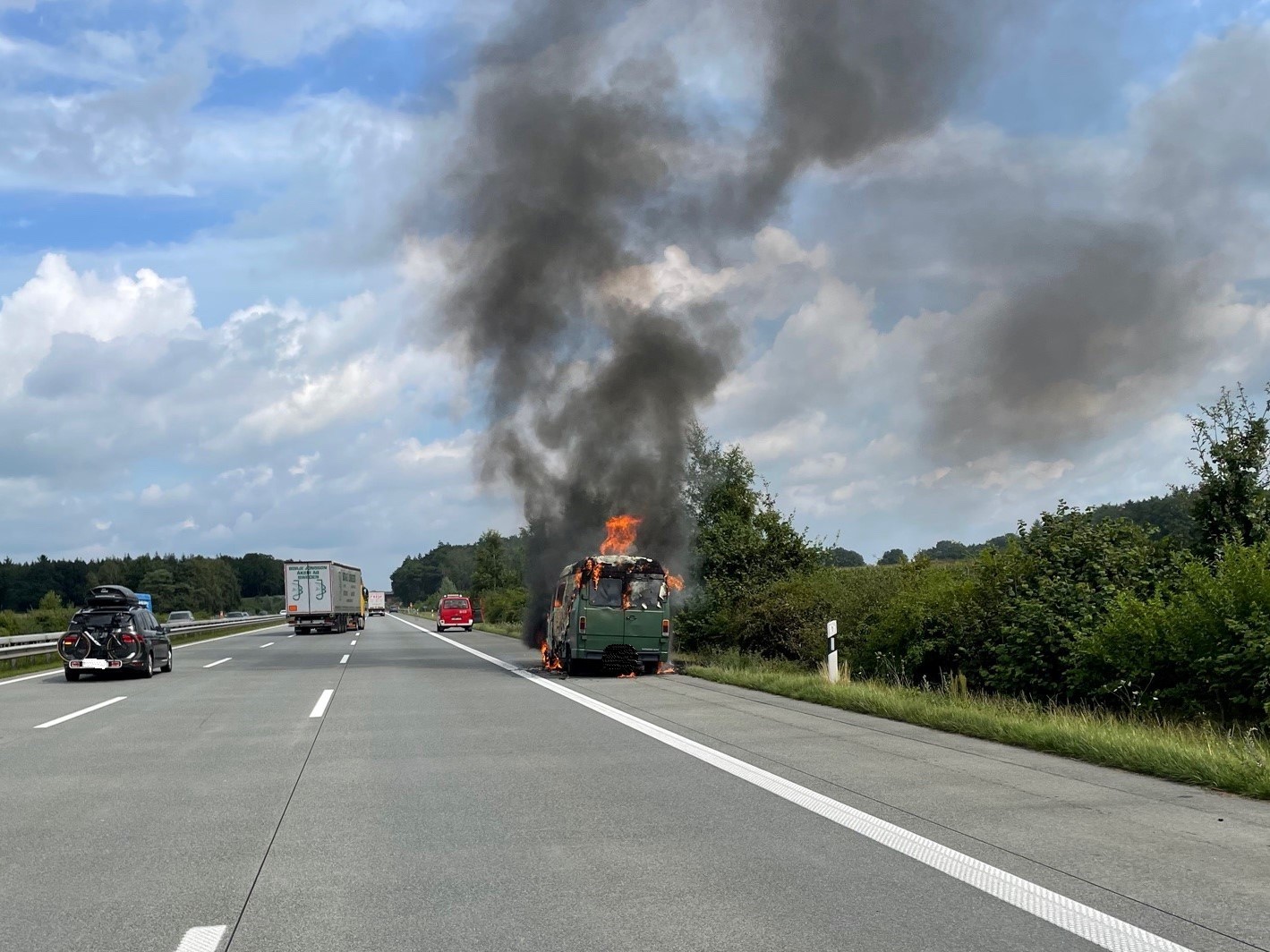 A1/Reeßum: Wohnmobilbrand auf der Autobahn