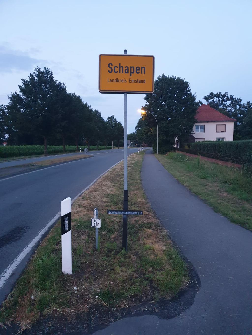 Schwarzes Kreuz am Ortseingang Schapen Bild: Polizei